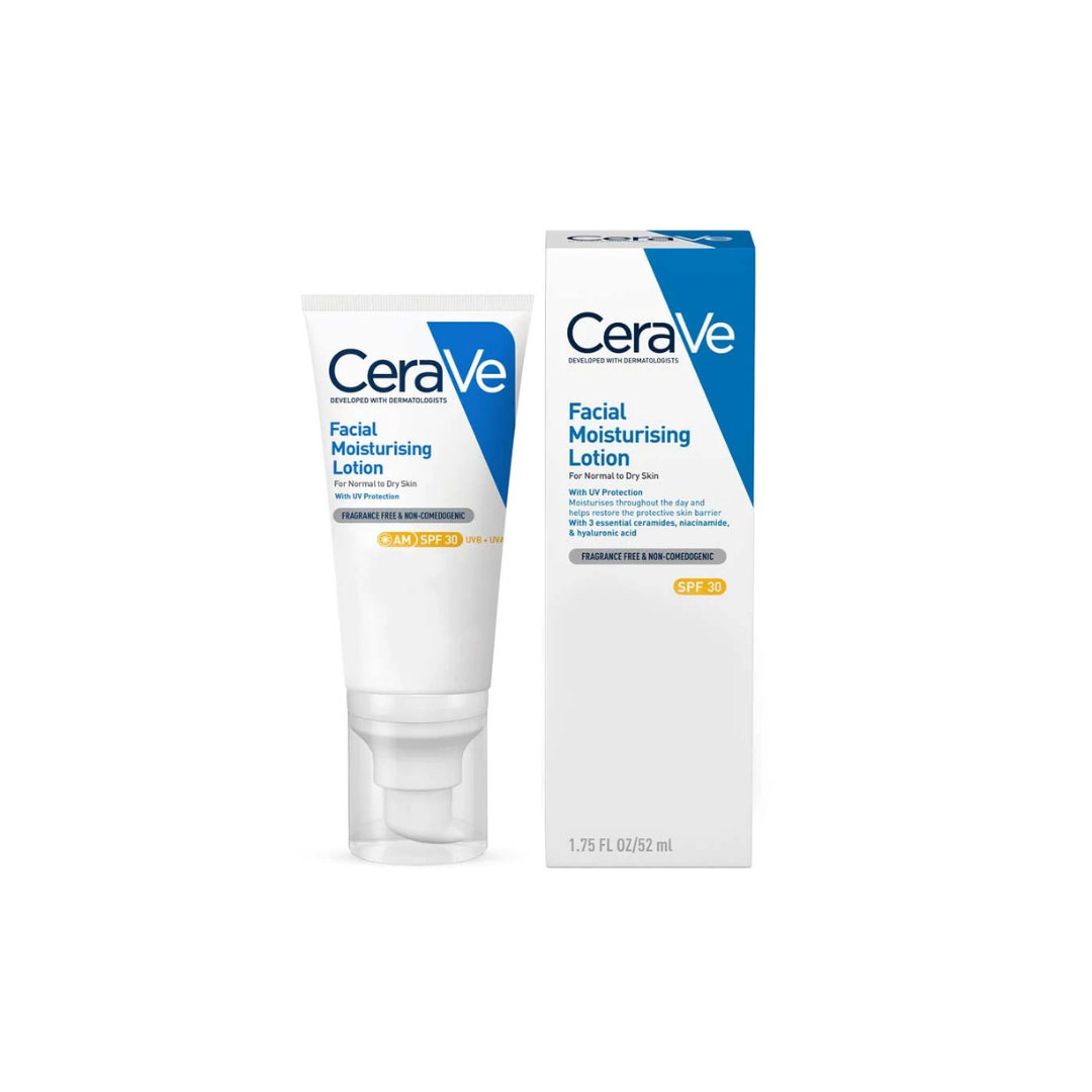 CeraVe AM Facial Moisturising Lotion SPF30 is a lightweight moisturiser, suitable for all skin types, including sensitive, and can be applied on the face daily. Enriched with SPF30, Hyaluronic Acid and 3 Essential Ceramides, this facial moisturiser helps provide broad spectrum UVA/UVB protection, while hydrating skin for up to 24 hours & protecting the skin’s natural barrier.