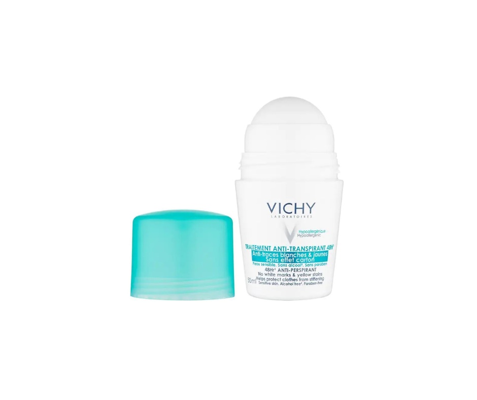 Get intense protection every day with the Vichy 48hr ‘No Trace’ Anti-Perspirant Roll-On. A unique formula that leaves no white marks or yellow stains. The long-lasting anti-perspirant works to neutralise odour without harsh alcohol, and provides effective protection without staining clothes. The No-Trace deodorant formula leaves no white marks and even helps to protect clothes from stiffening.