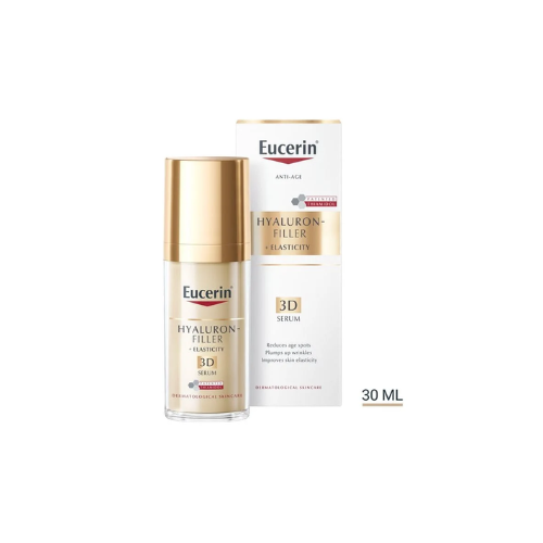 A deep wrinkle serum to reduce age spots Inspired by dermatological treatments, Eucerin Hyaluron-Filler + Elasticity 3D Serum is a light and moisturising anti-ageing serum that effectively treats the 3 Dimensions of skin ageing: Age spots: The formula includes thiamidol Unique to Eucerin, thiamidol acts at the root cause of hyperpigmentation and is clinically proven to reduce age spots and, when used regularly, prevents their re-appearance. Wrinkles: As our skin ages, wrinkles deepen. Our innovative blend of high and low molecular Hyaluronic Acid visibly plumps deep wrinkles. High molecular Hyaluronic Acid works to smooth the external layers of skin while the low molecular Hyaluronic Acid (which is 40 times smaller penetrates further into the epidermal layers where deeper wrinkles originate. Loss of elasticity Active ingredient Arctiin is proven to accelerate collagen renewal in skin cells. It works alongside the Hyaluronic Acid in our formula to improve skin elasticity. Eucerin Hyaluron-Filler + Elasticity 3D Serum is clinically and dermatologically proven to reduce age spots visibly plump deep wrinkles, improve elasticity and leave skin looking and feeling radiant and rejuvenated. (1) Compared to the high molecular Hyaluronic Acid also used in the formula.