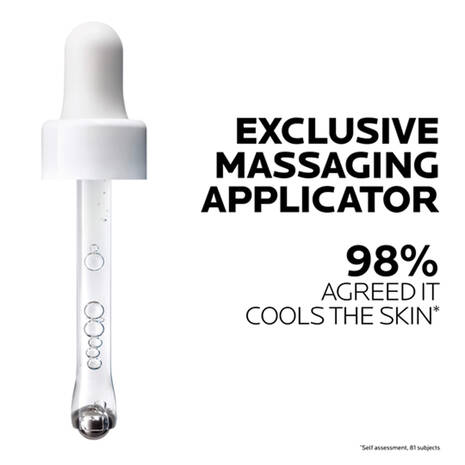 Helps to repair the skin barrier in 1H. Formulated serum with Hyaluronic Acid, 4% Niacinamide, Caffeine and Vitamin B5. Exclusive steel applicator, for an instant cooling and massage effect (98% agree*)